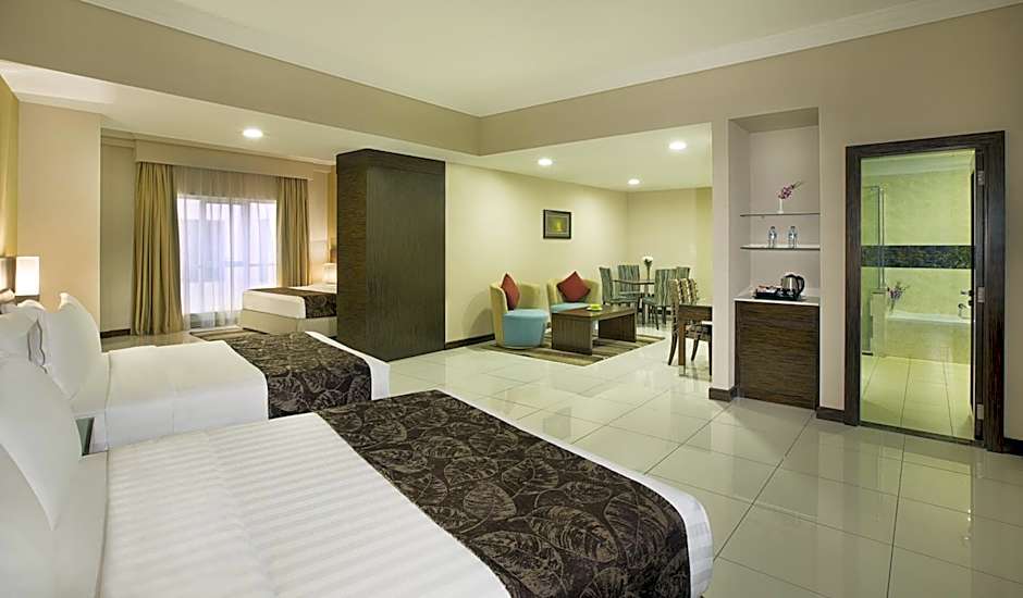 This air-conditioned suite offers a living room with a flat-screen TV and a dining table. It also features a mini-bar and an electric kettle. The bathroom includes a bath and free toiletries.